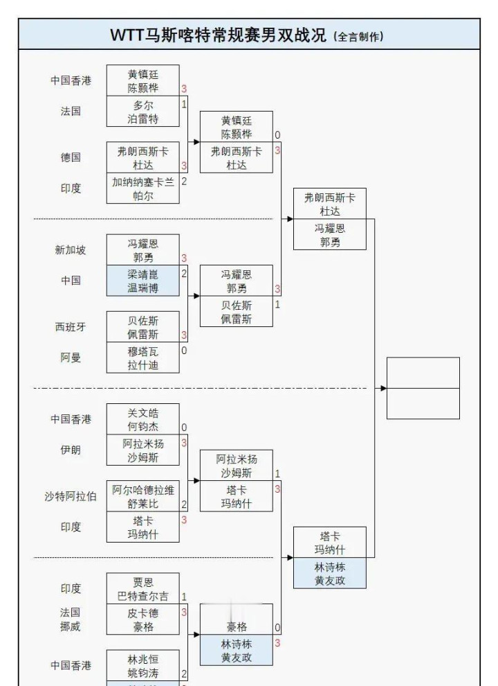 在男双形态上,林诗栋/黄友政是国乒惟一投入到半决赛的组合,在接下来的这场比赛当中,他们将会迎战印度组合塔卡和玛纳什,在这场比赛当中,印度选手的水公平在冉冉栽种,中国香港选手黄镇廷/陈颢桦稍微有些缺憾,他们被德国组合弗朗西斯卡/杜达以0:3的比分打败,无缘投入到4强当中,而德国组合则是在半决赛当中对阵新加坡选手冯耀恩/郭勇。