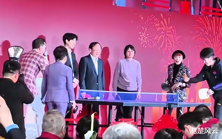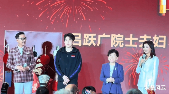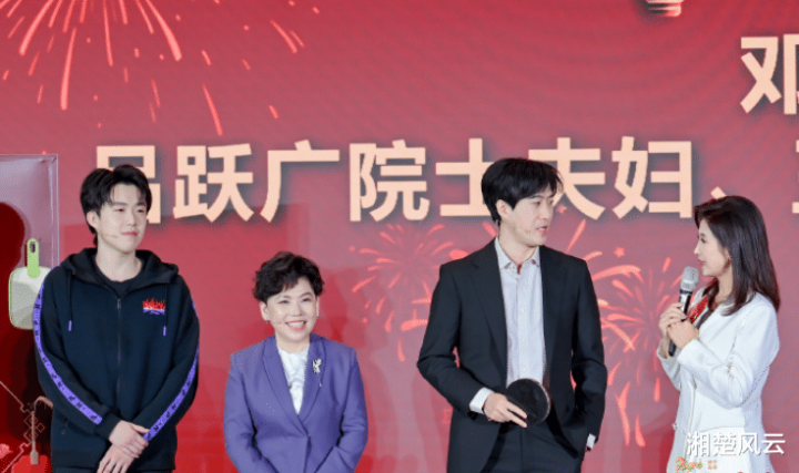 邓亚萍、王楚钦、吴刚等东说念主站在行动现场的前台上。邓亚萍发表祝词。她说了好多,然后浅笑着给现场的院士们、竭诚们贺年。王楚钦有点愧疚,就作念了自我先容。