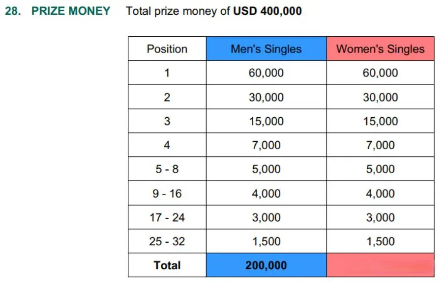 以上六东谈主悉数得回2.9万好意思元,约21万东谈主民币;通盘十二位国乒选手悉数得回23.9万好意思元奖金,约173万元东谈主民币。