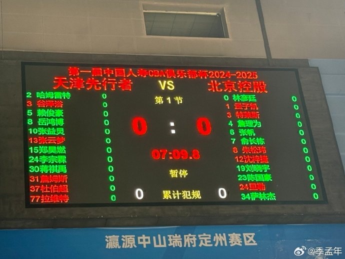 11月12日讯 CBA杯赛,北控男篮将在稍后对阵天津。