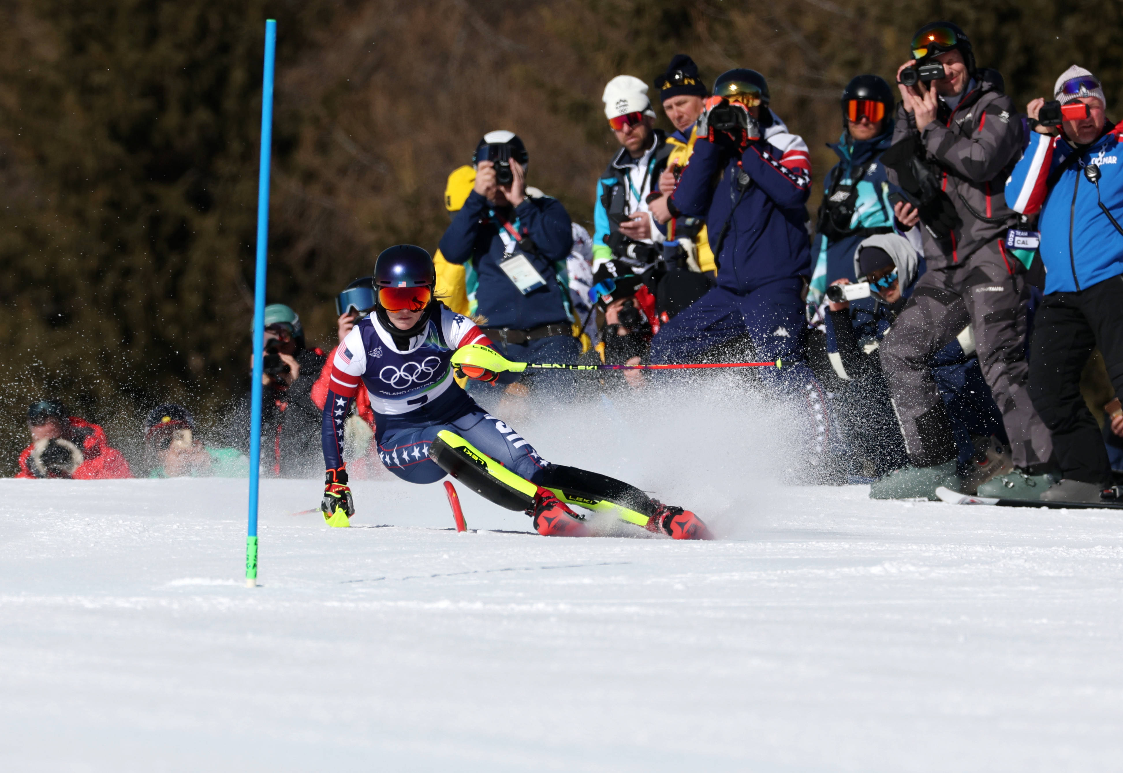 2月18日,好意思国选手希弗林在第一轮比赛中。新华社记者 张晨霖 摄德国选手莱娜·迪尔是首轮独逐一位成绩接近希弗林、差距在1秒以内的选手,但在决定性的第二轮中,她刚启程不久便在第一个旗门处出现空虚,断送了争牌但愿。瑞典选手科内莉亚·厄尔伦德首轮排名第三,但她在第二轮雪杖撅断未能完赛,也无缘奖牌。